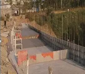 防滲土工膜應滿堂鋪設,其搭接方式應采用熱熔膠結;橫向應鋪設至鋼筋砼保護壁位置,并沿保護壁向上反卷1m高度(含保護壁基礎)。